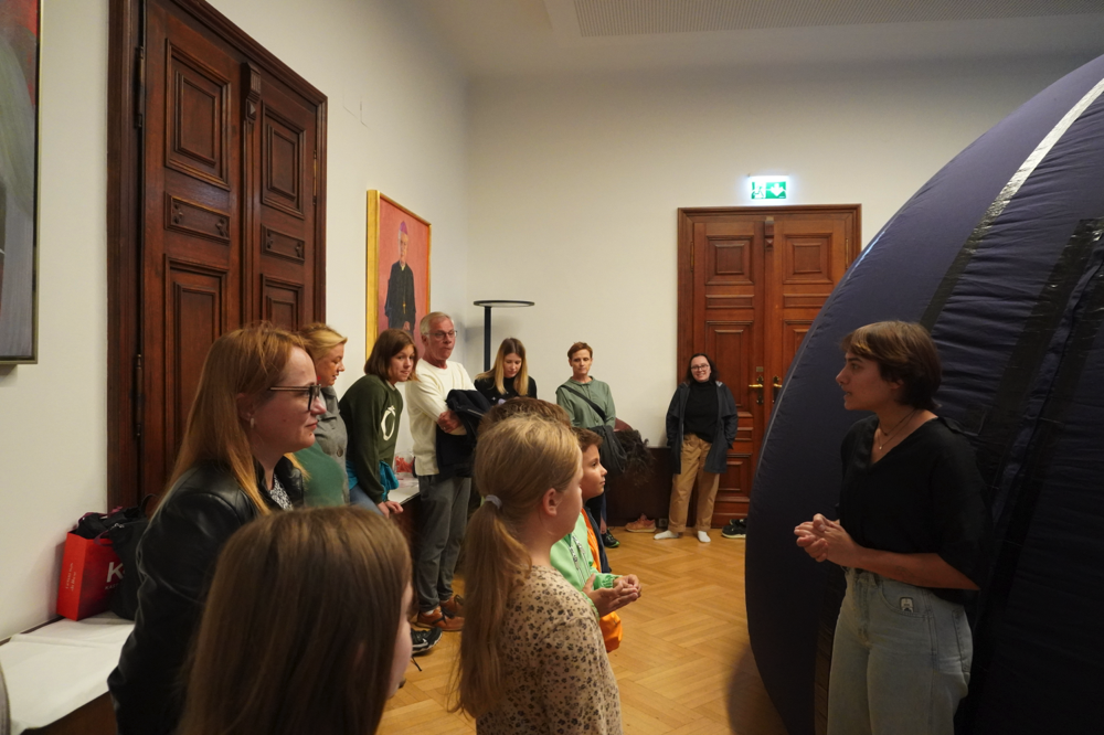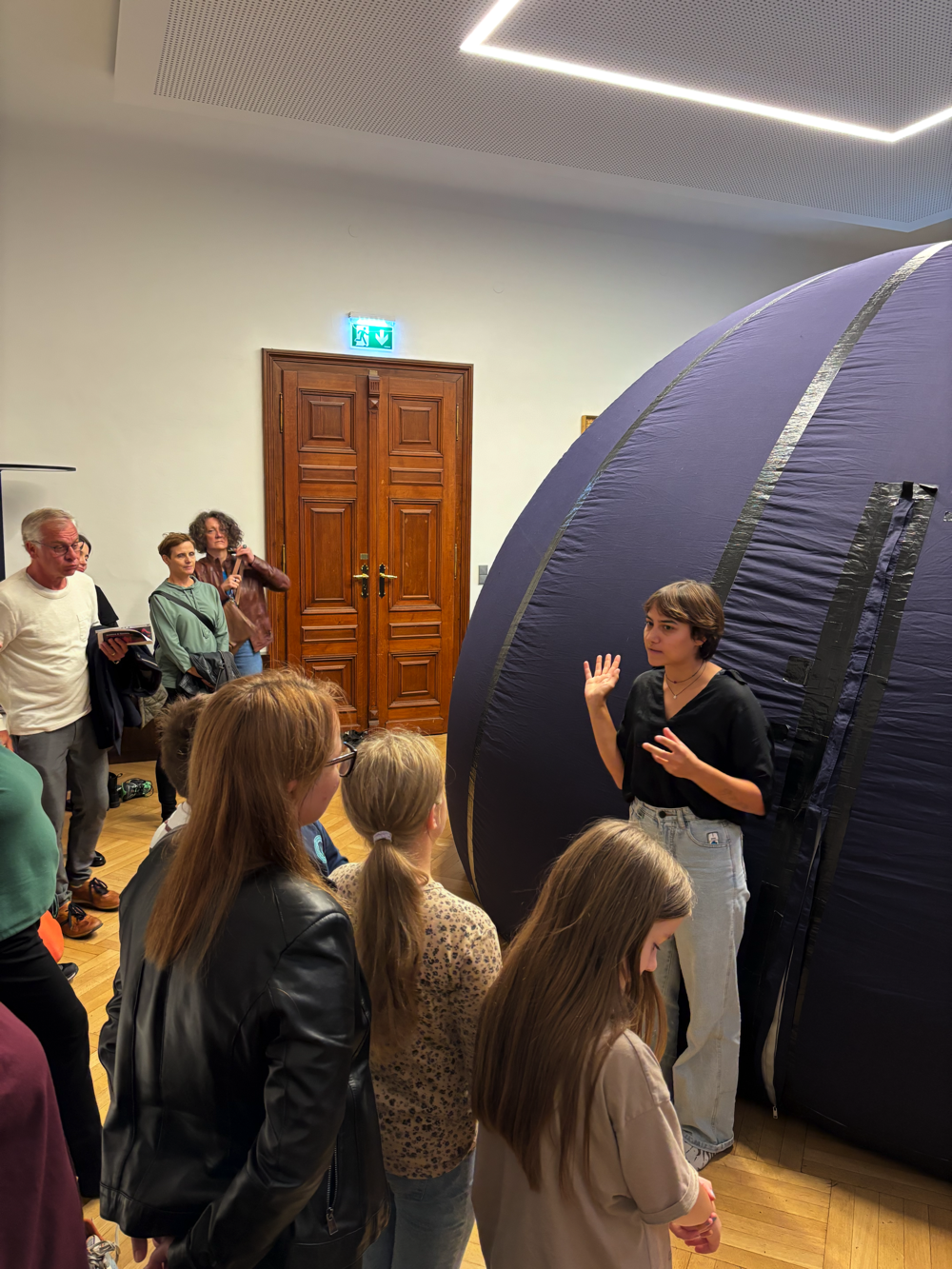 Das mobile Sternenzelt ist ein digitales Planetarium, in dem der aktuelle Nachthimmel von einer echten Astronomin interaktiv vermittelt wird.