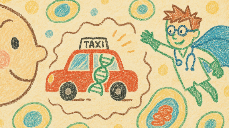 Stell dir vor, in deinem Körper gibt es ganz viele kleine Arbeiter, die Zellen heißen. Manchmal werden einige dieser Zellen krank, weil ein winziger Bauplan in ihnen, die Gene, einen Fehler hat. Aber zum Glück gibt es schlaue Wissenschaftler, die wie Superhelden-Ärzte sind! Sie haben eine Idee, wie man diesen kranken Zellen helfen kann: mit winzigen Medizin-Taxis!
